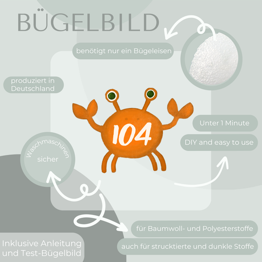 10 Stück Krabbe Größen-Bügelbilder Set Größenlabel Eigenproduktion