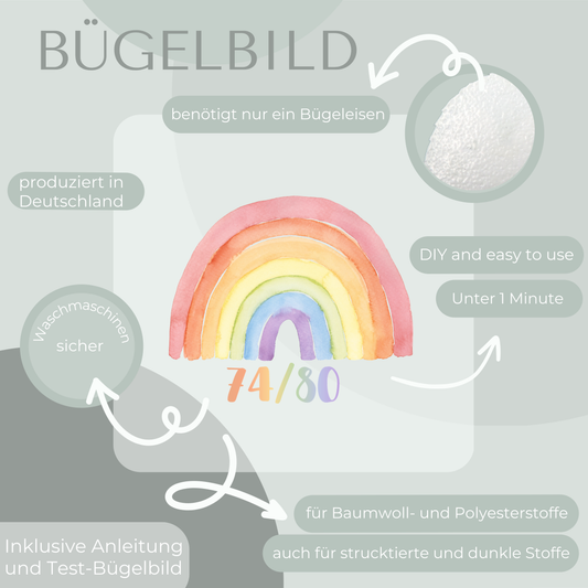 10 Stück Regenbogen bunt Größen-Bügelbilder Set Größenlabel Eigenproduktion