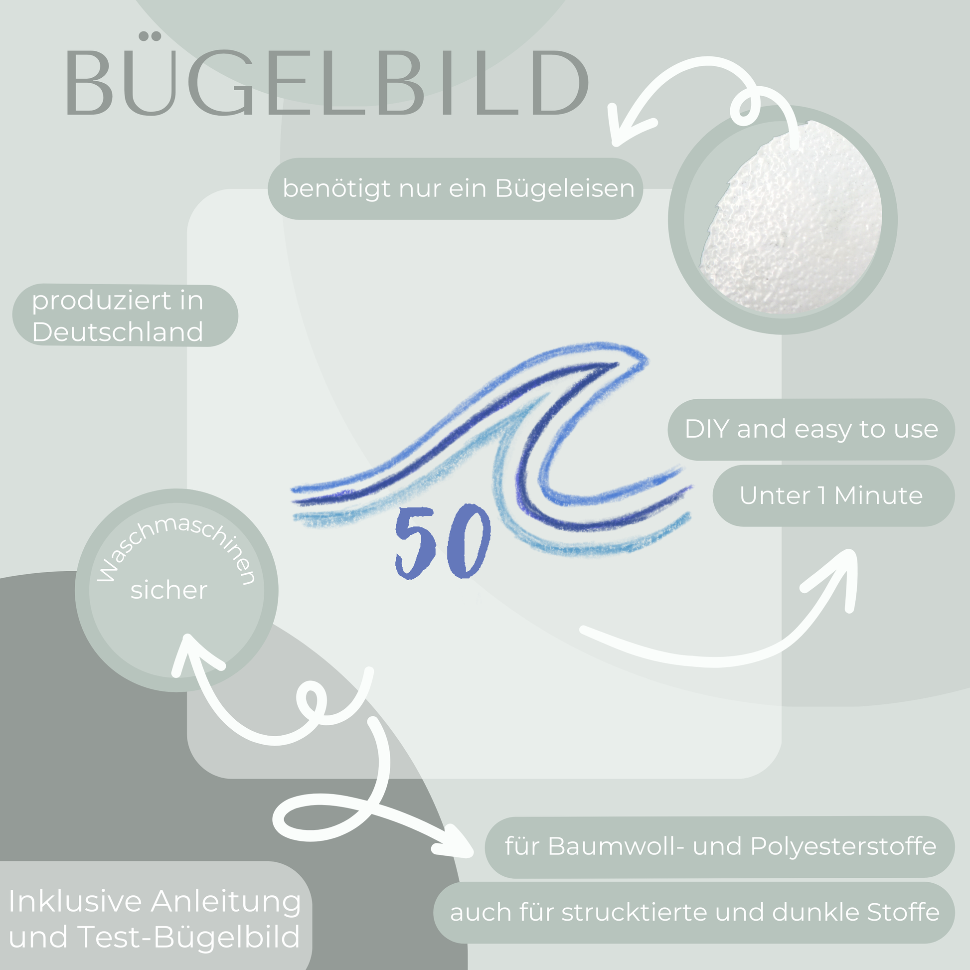 Eine ausführliche Schritt-für-Schritt-Anleitung wie du das Bügelbild anbringst liegt deiner Bestellung bei. Außerdem werden Test-Bügelbilder zum ausprobieren beiliegen.