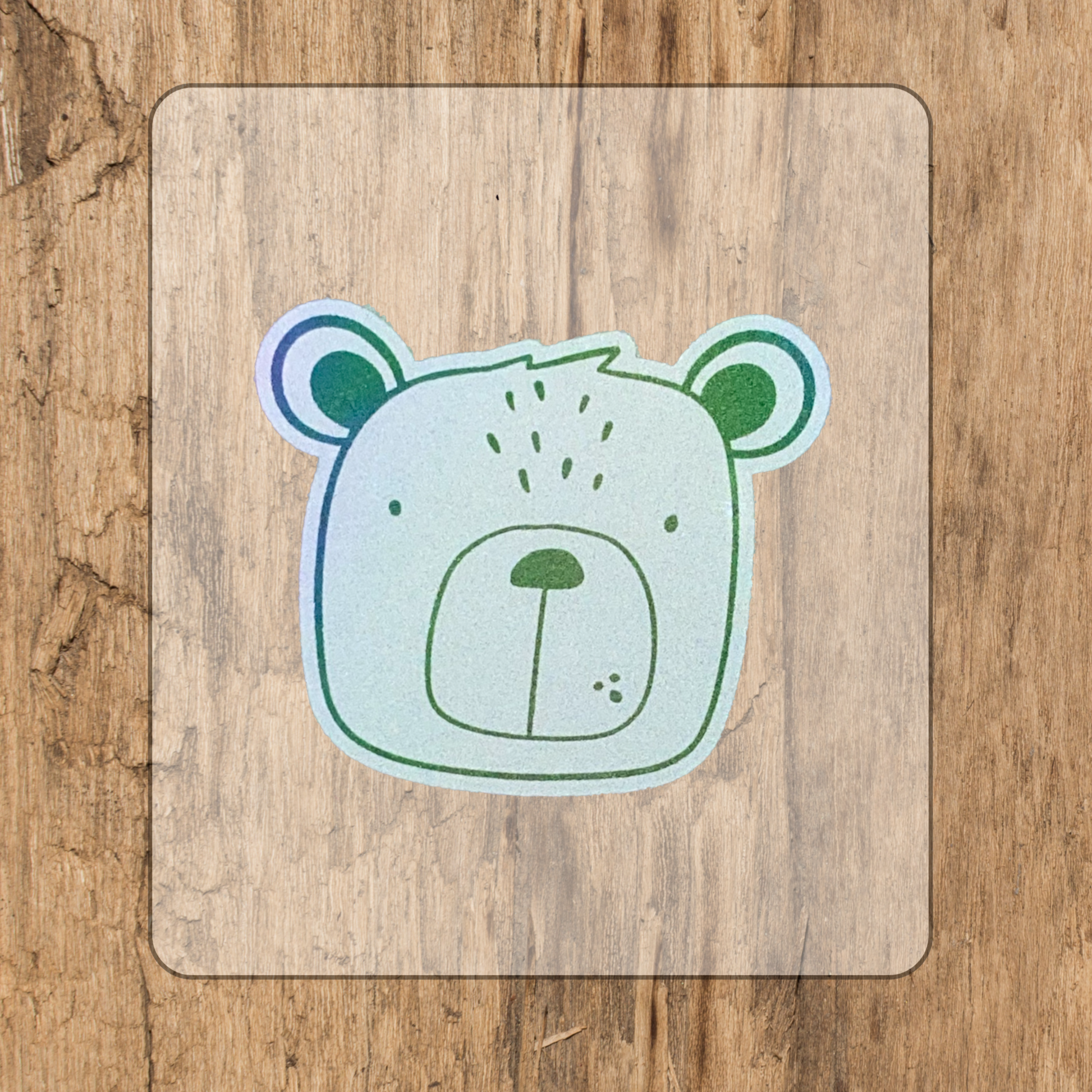 1 Stück reflektierendes, Bügel-Label in Form eines Bärenkopfes.