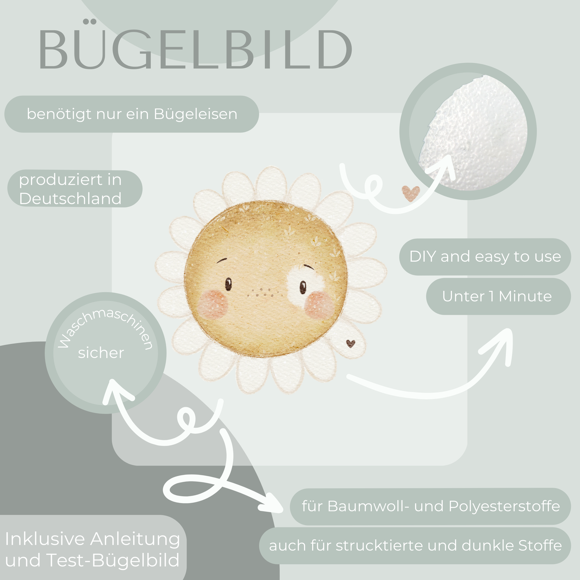 Eine ausführliche Schritt-für-Schritt-Anleitung wie du das Bügelbild anbringst liegt deiner Bestellung bei. Außerdem werden Test-Bügelbilder zum ausprobieren beiliegen.