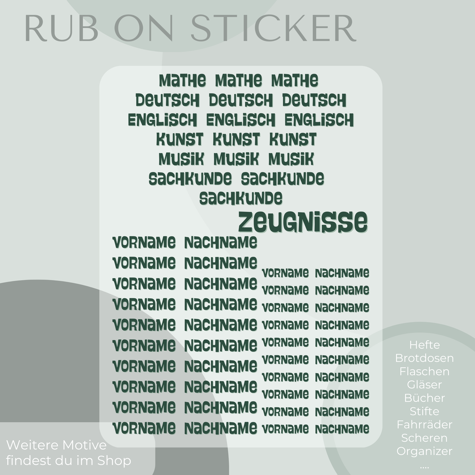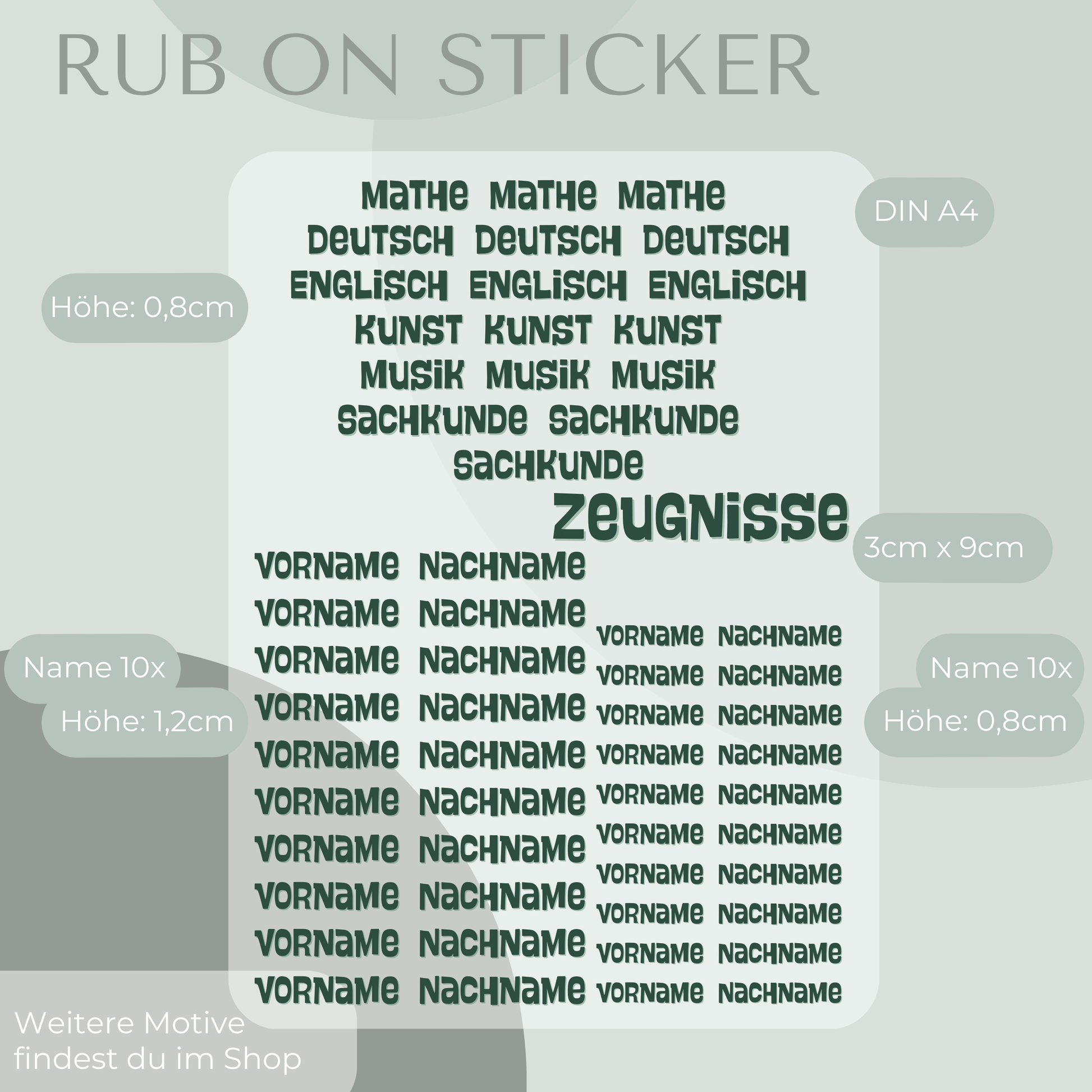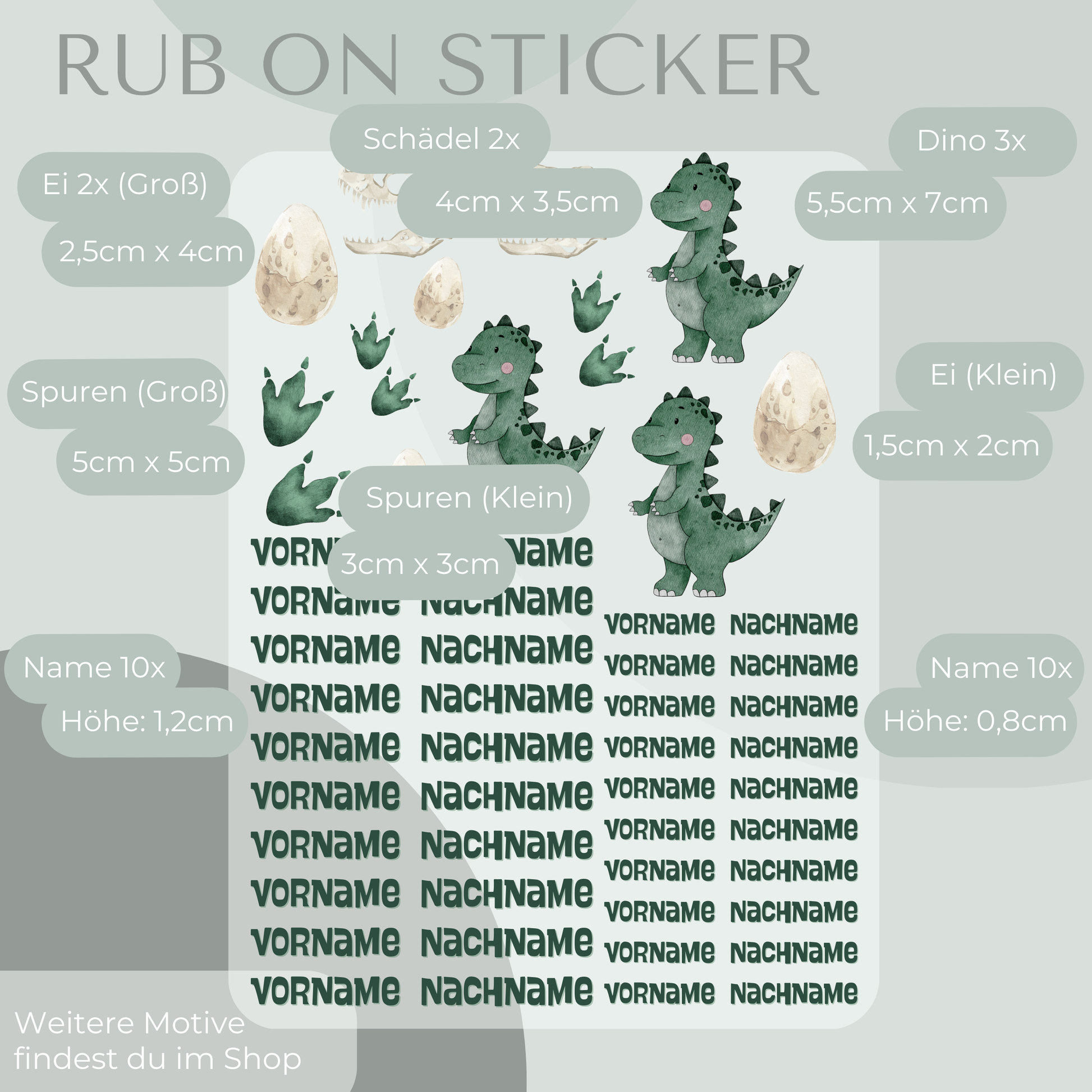 Rub On Sticker – Dinosaurier-Motive oder Schulfächer mit deinem Namen