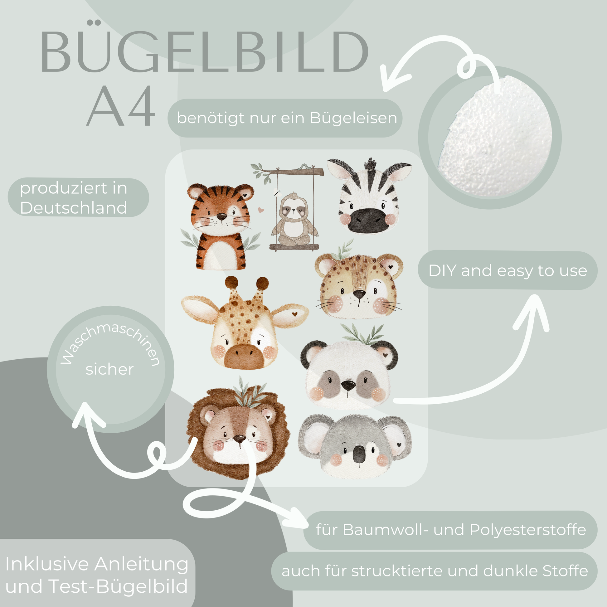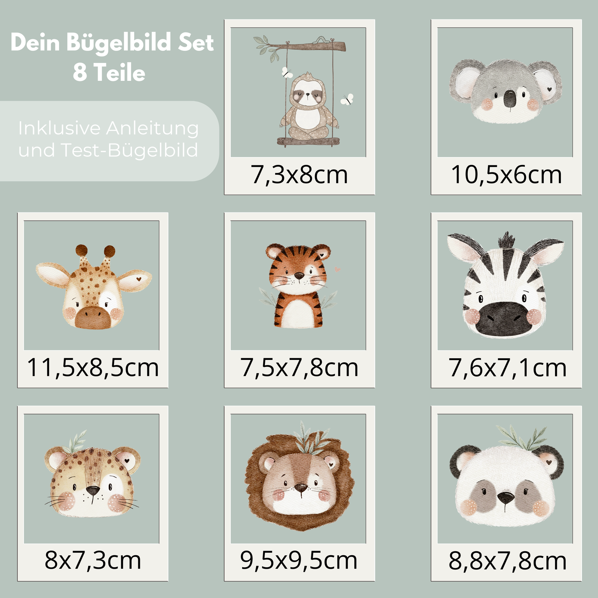 Das Bügelbild-Set hat die Größe Din A4 und beinhaltet 8 Bügelbilder.
