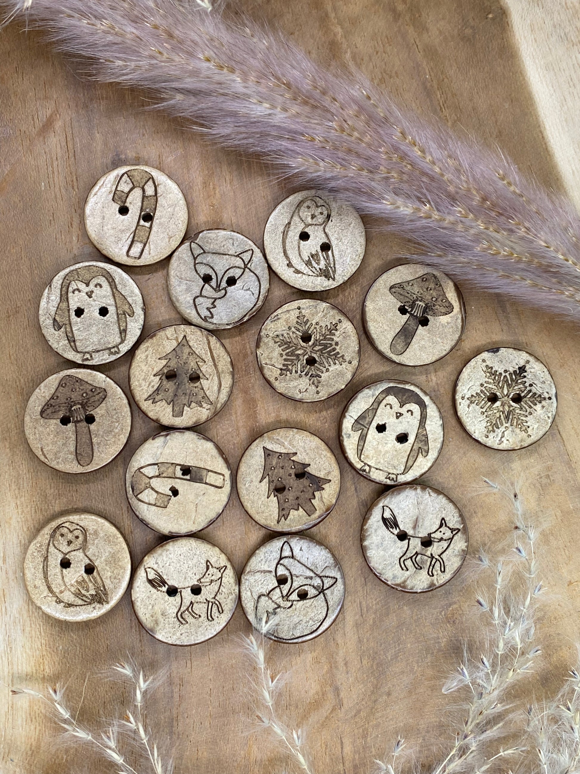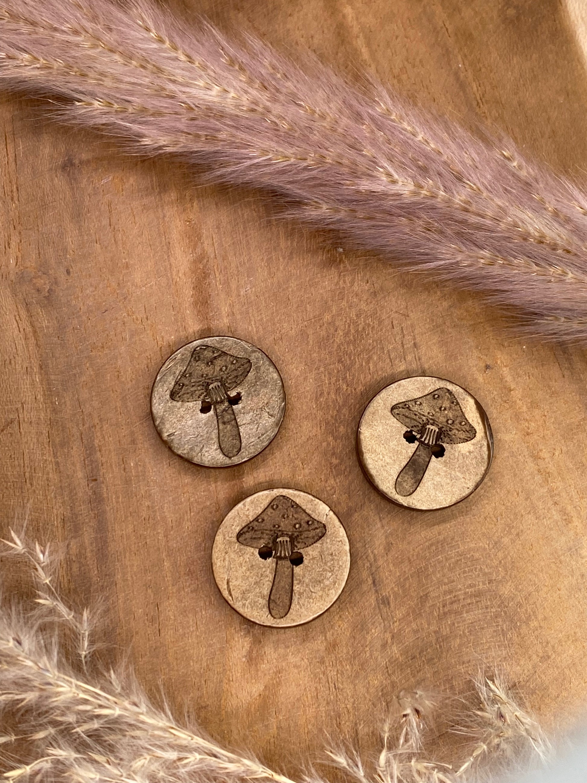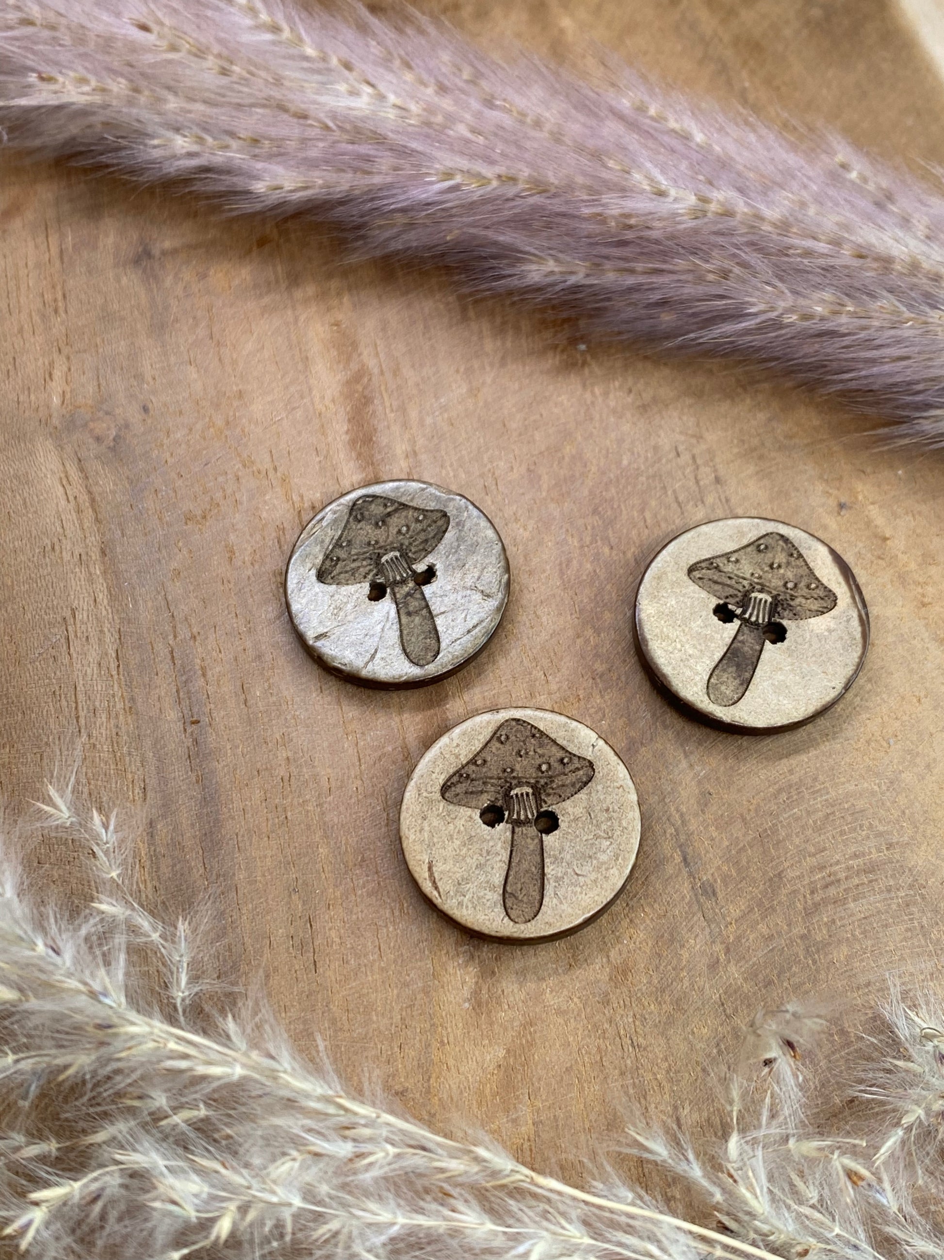 Hergestellt aus natürlicher Kokosnussschale – leicht, robust und mit individueller Maserung. Jeder Knopf ein kleines Naturunikat.