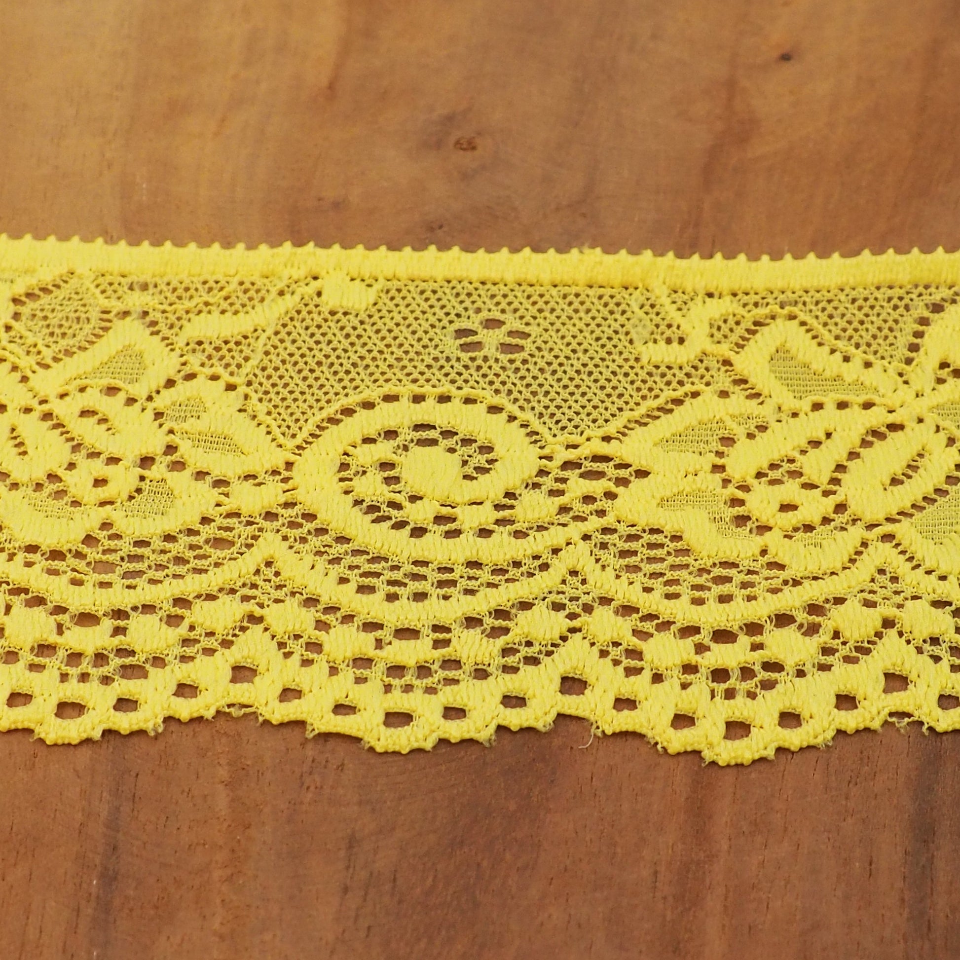 1 Meter elastische Spitze in der Farbe neon gelb und 68mm Breite.