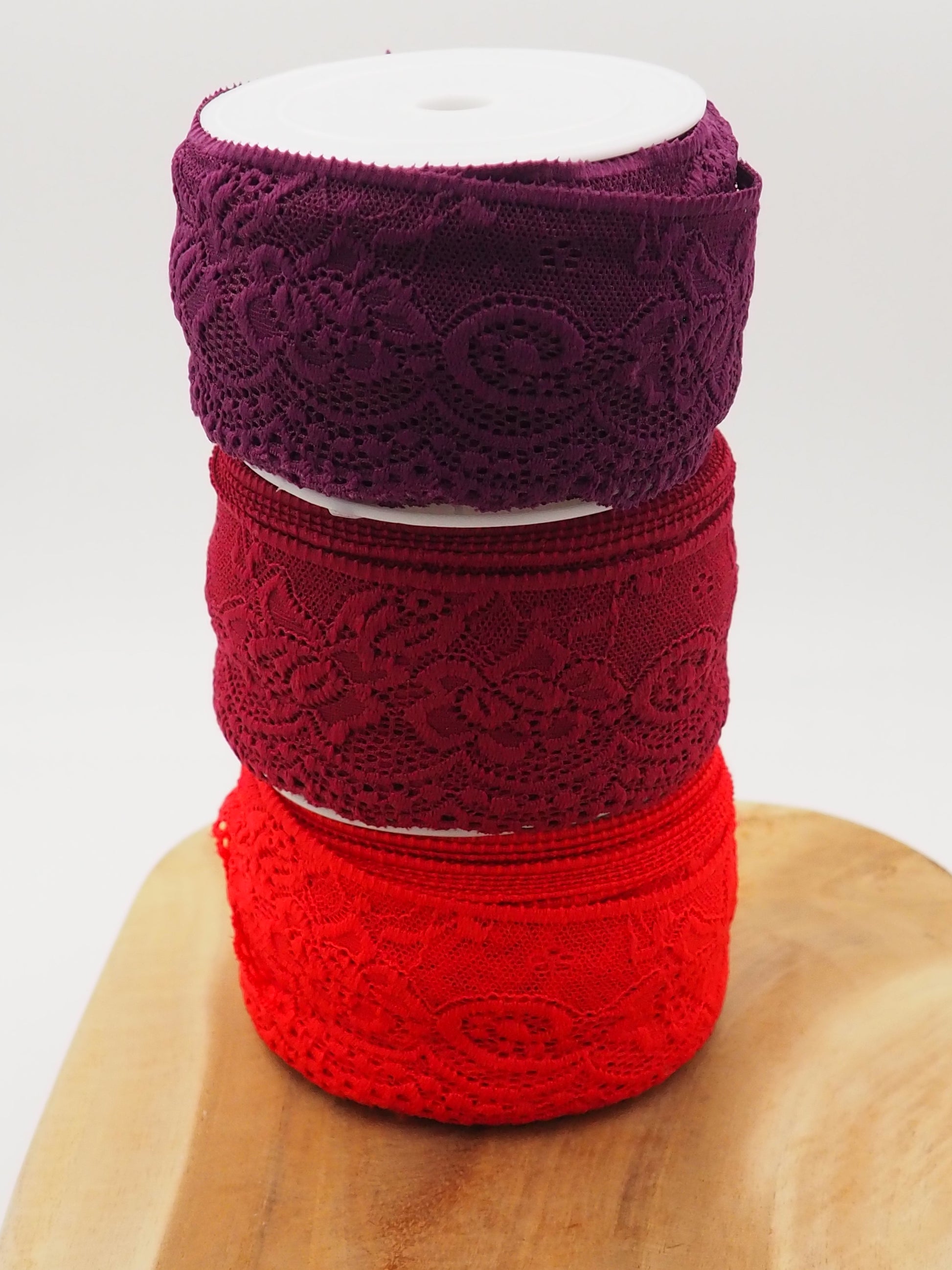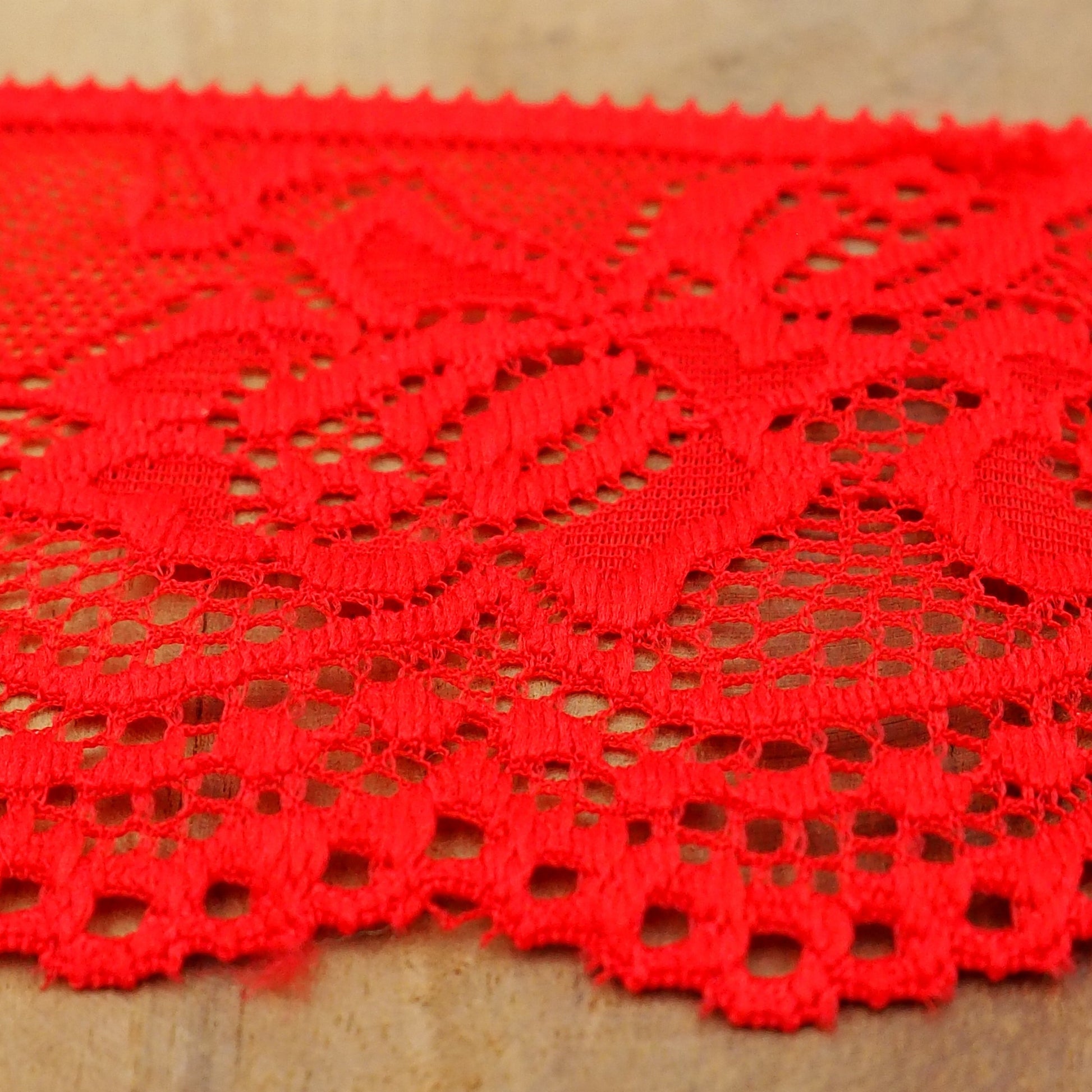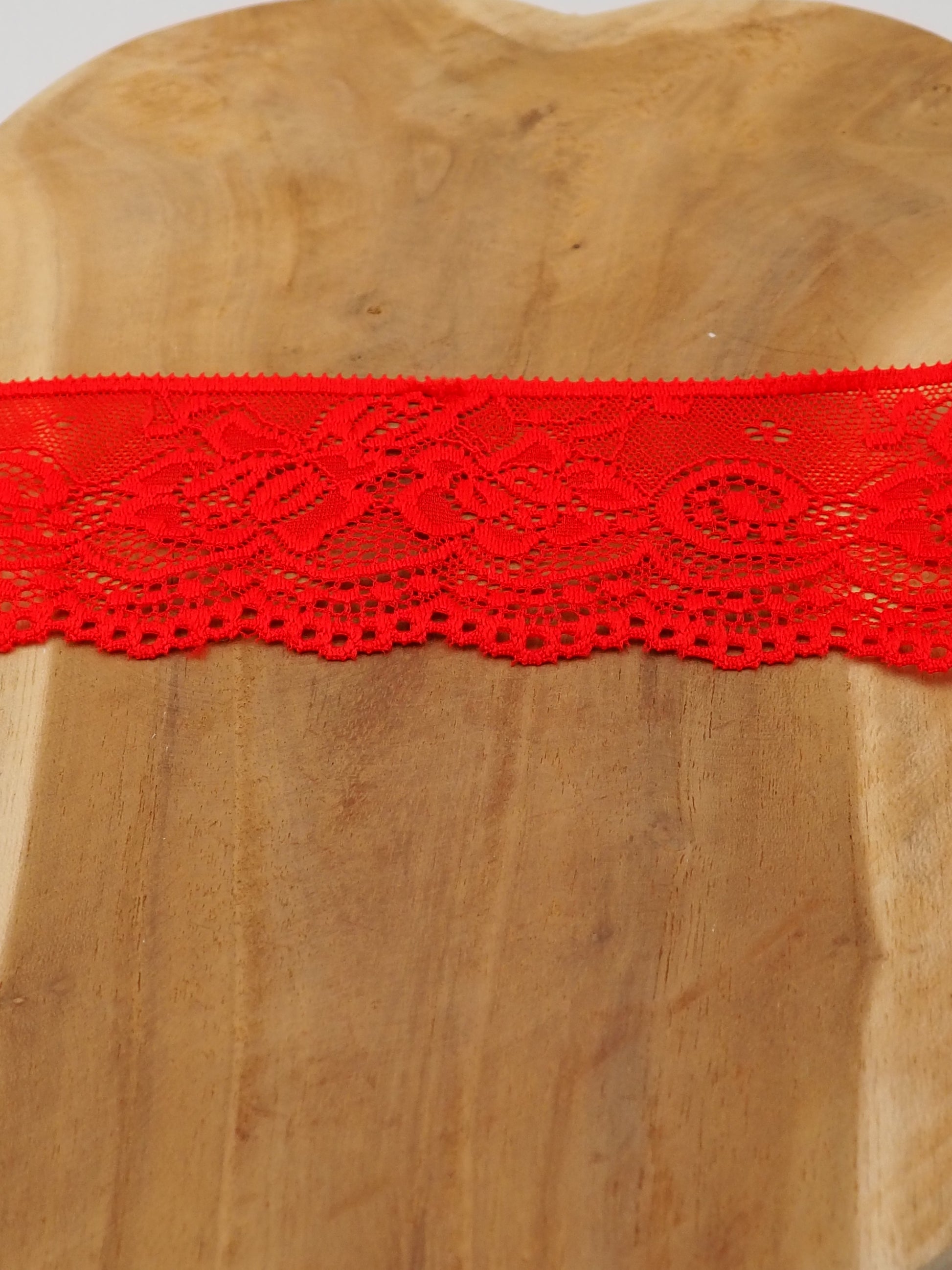 1 Meter elastische Spitze in der Farbe rot und 68mm Breite.
