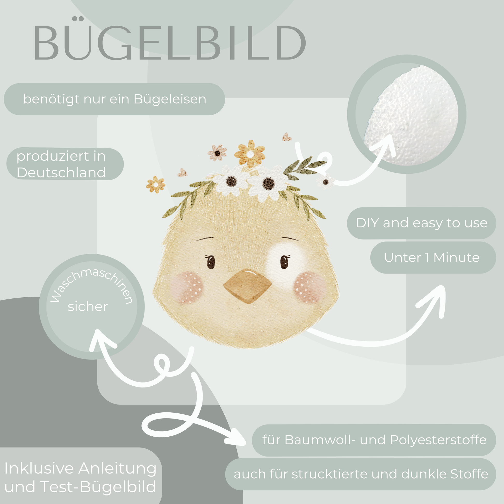 1 Stück Bügelbild mit dem Motiv "florales Küken"