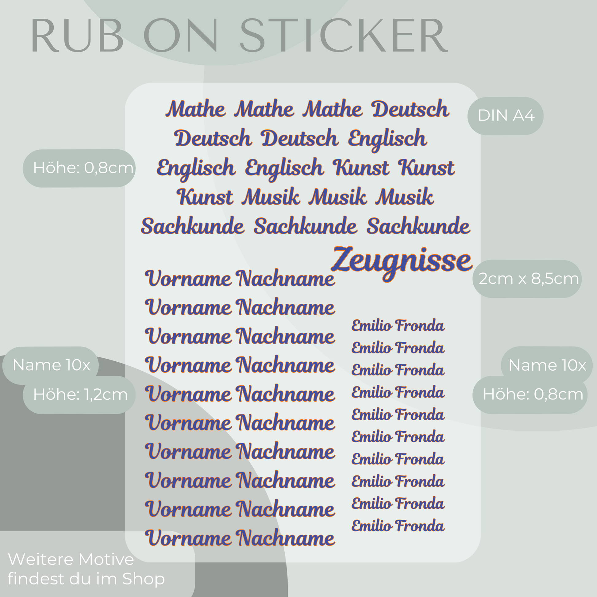 Rub On Sticker – Fußball-Motive oder Schulfächer mit deinem Namen