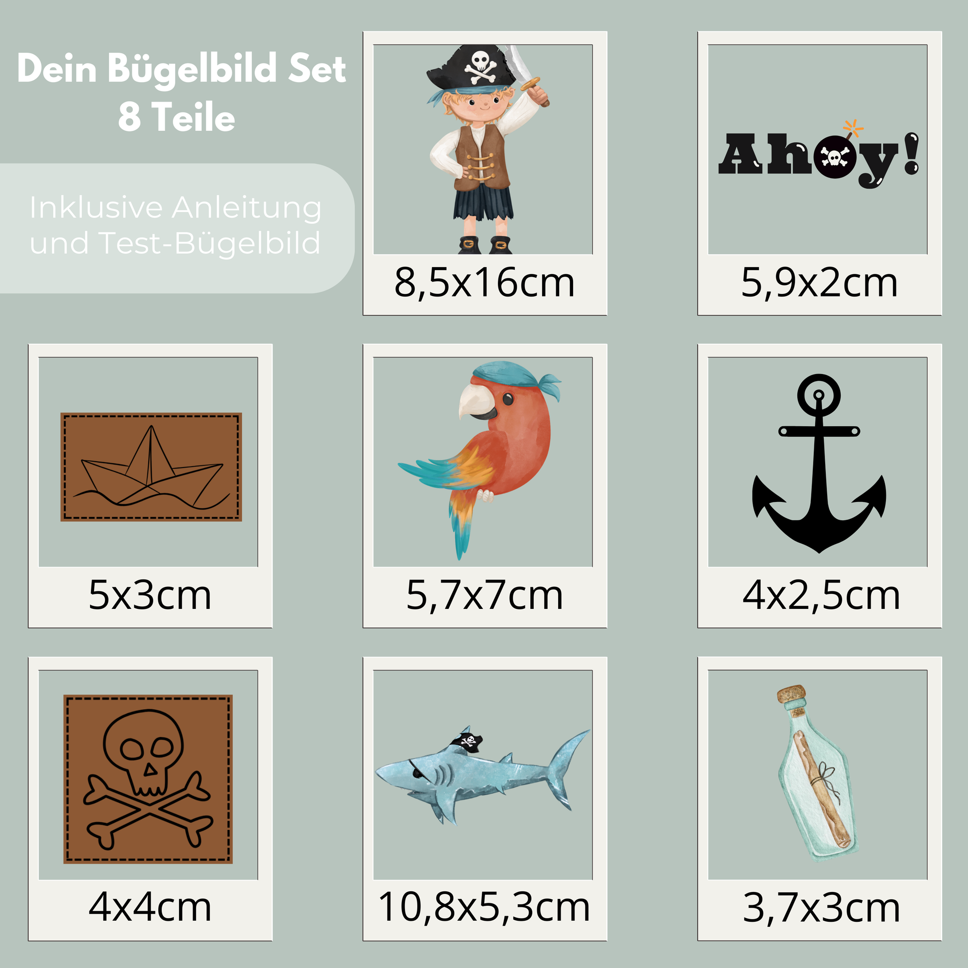 Das Bügelbild-Set hat die Größe Din A5 und beinhaltet 8 Bügelbilder.