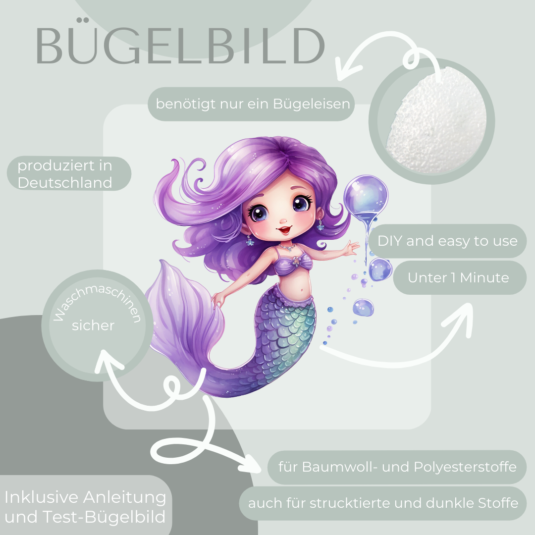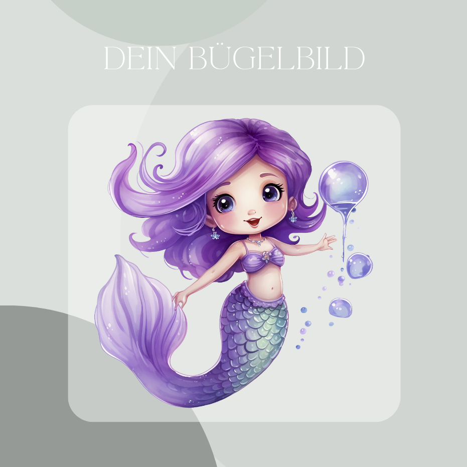 1 Stück Bügelbild mit dem Motiv Meerjungfrau mit Wassertropfen .