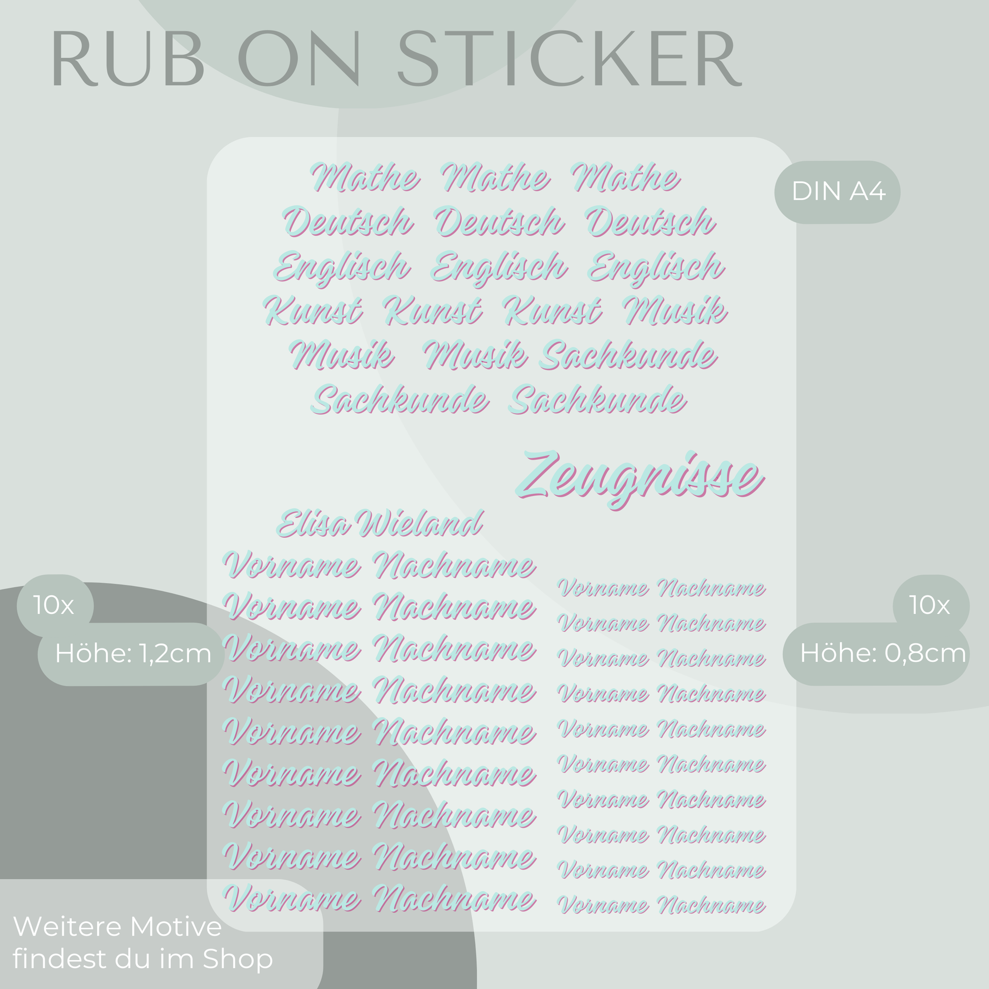 Rub On Sticker – Meerjungfrauen-Motive oder Schulfächer mit deinem Namen