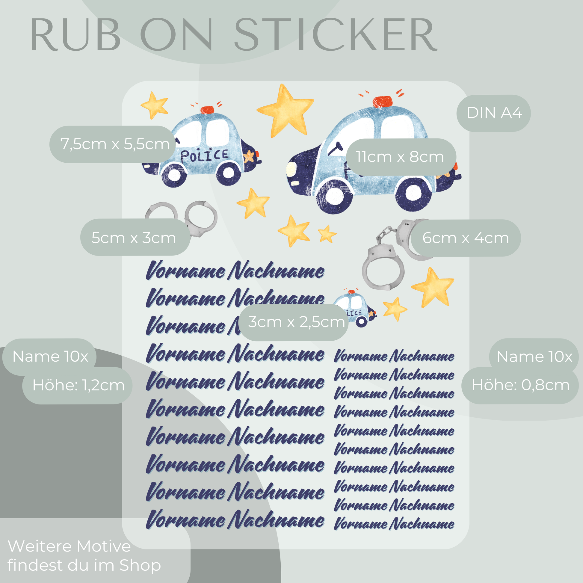 Rub On Sticker – Polizei-Motive oder Schulfächer mit deinem Namen