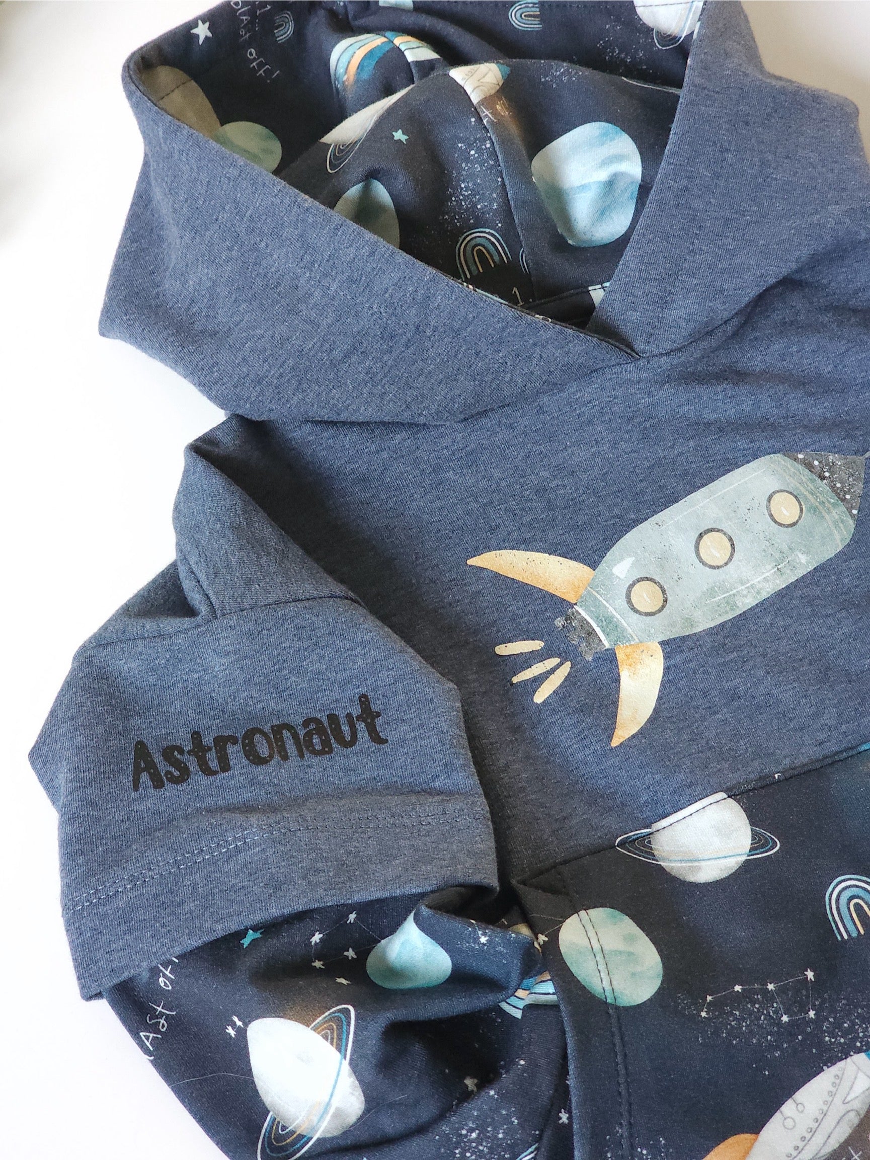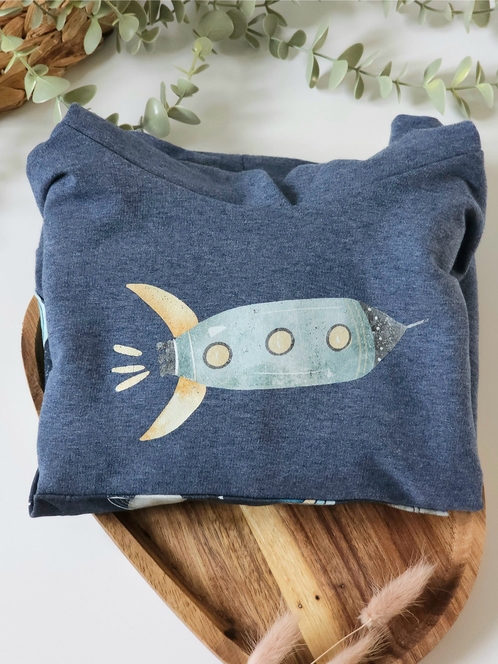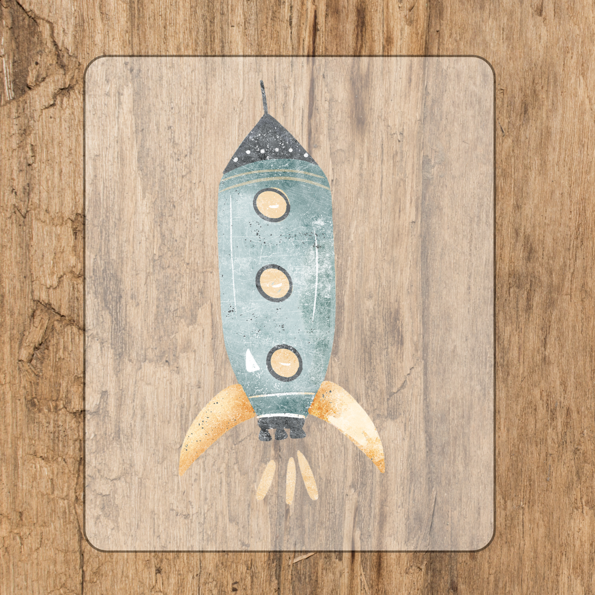 1 Stück Bügelbild mit dem Motiv Rakete.