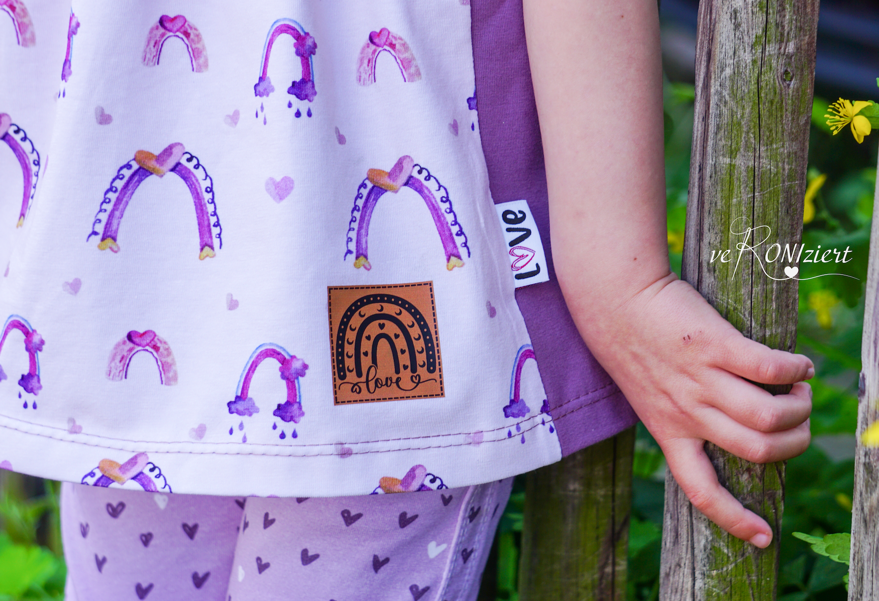 1 Stück aufbügelbares Label in Kunstleder-Label Optik mit Regenbogen und Text "love".