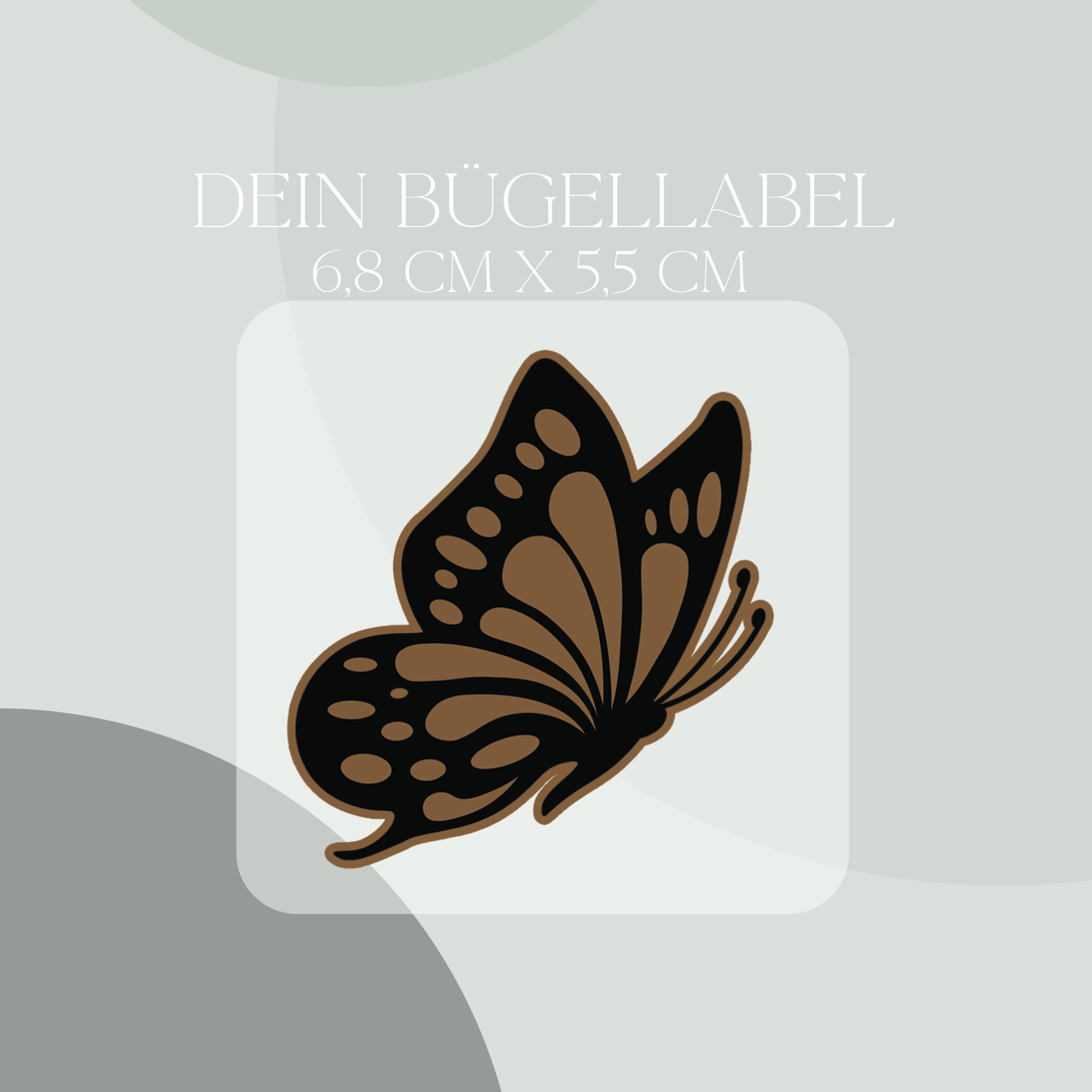 1 Stück aufbügelbares Label in Kunstleder-Label Optik in Form eines Schmetterlings.