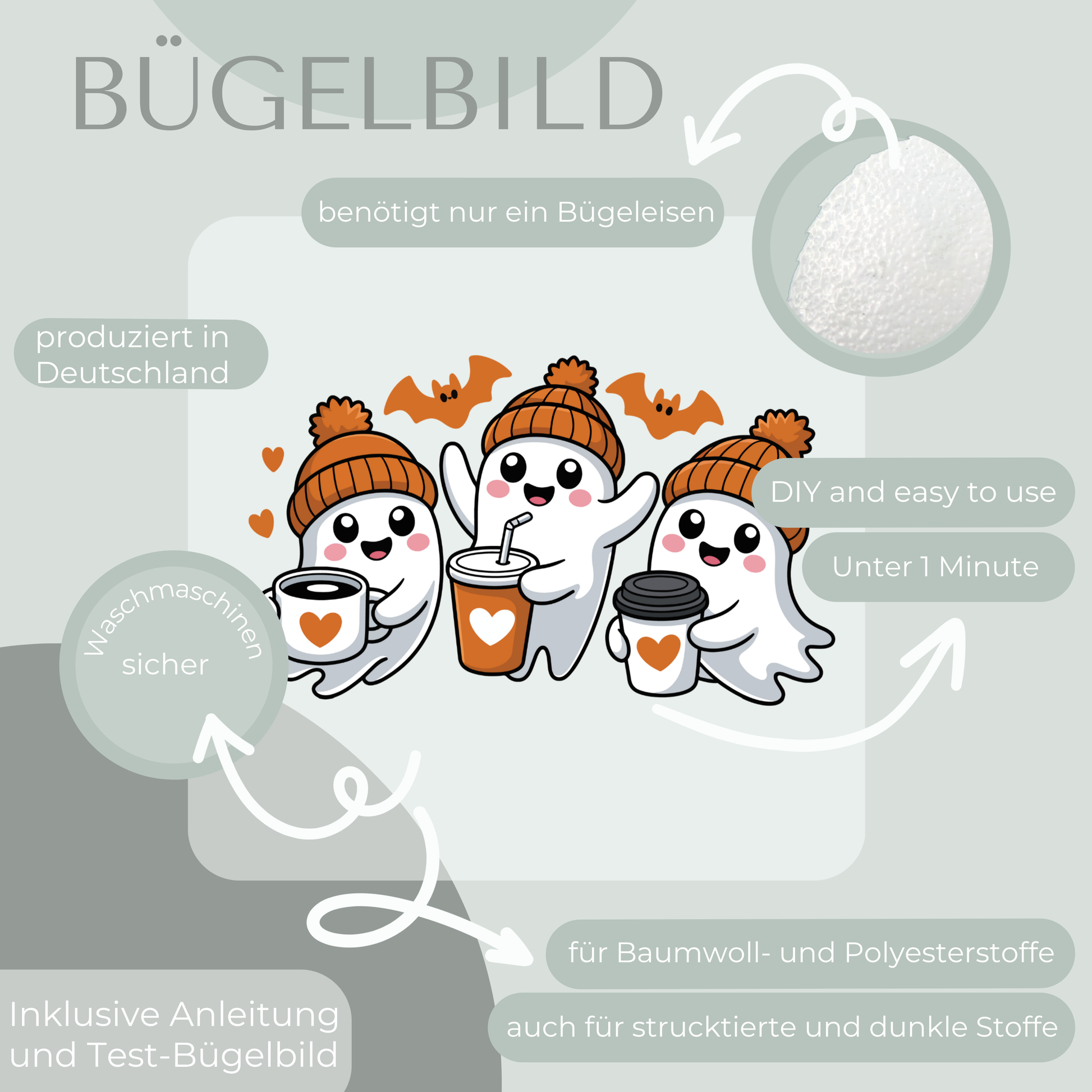 1 Stück Bügelbild mit dem Motiv "Ghost Coffee Vibes"